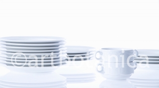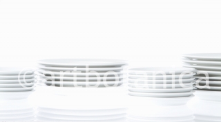 Tassen und Teller in extremen Perspektiven fotografiert, klar und nüchtern. - Einfach nur schön!